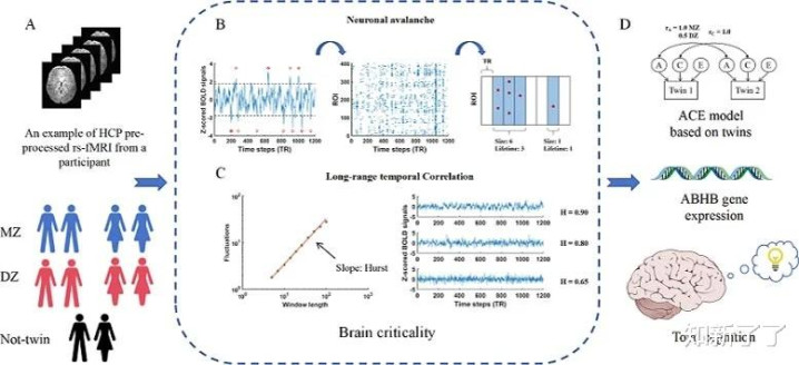 这项研究由中国科学院生物物理研究所的刘宁教授和中国科学院自动化研究所的余山教授领导,利用了来自人类连接组计划(Human Connectome Project)S1200数据集的静息态功能磁共振成像(rs-fMRI)数据。该数据集包含250对同卵双胞胎、142对异卵双胞胎以及437名无血缘关系个体的扫描结果,使研究人员能够有效评估遗传因素对大脑临界态的贡献。